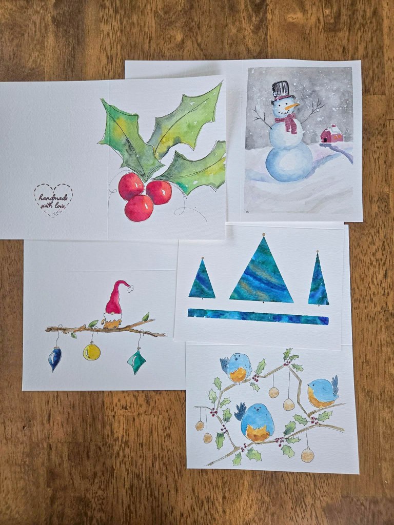 I spent some of the day on Saturday painting Christmas cards to be sent to folks in nursing homes. Nothing too complicated, just simple cards painted in the hope they made someone smile.