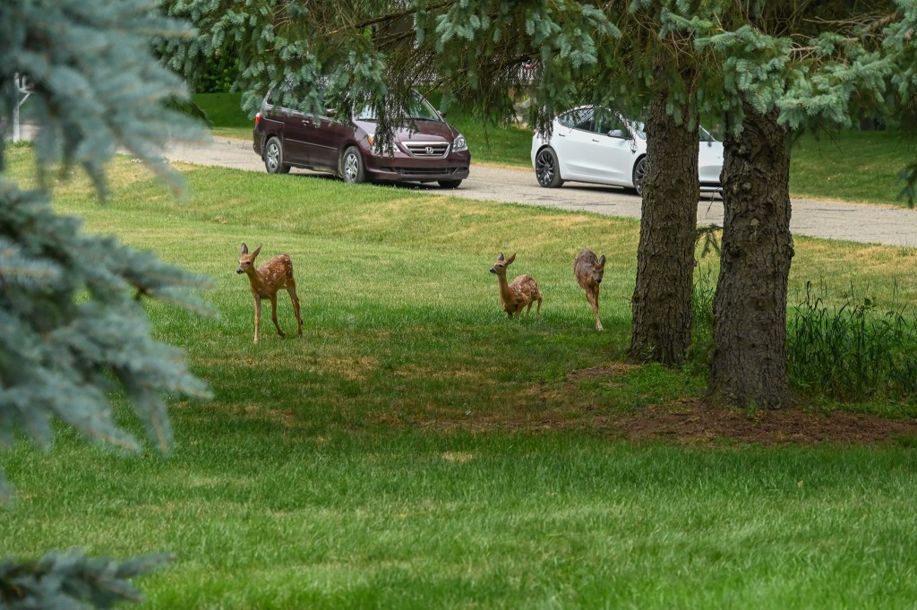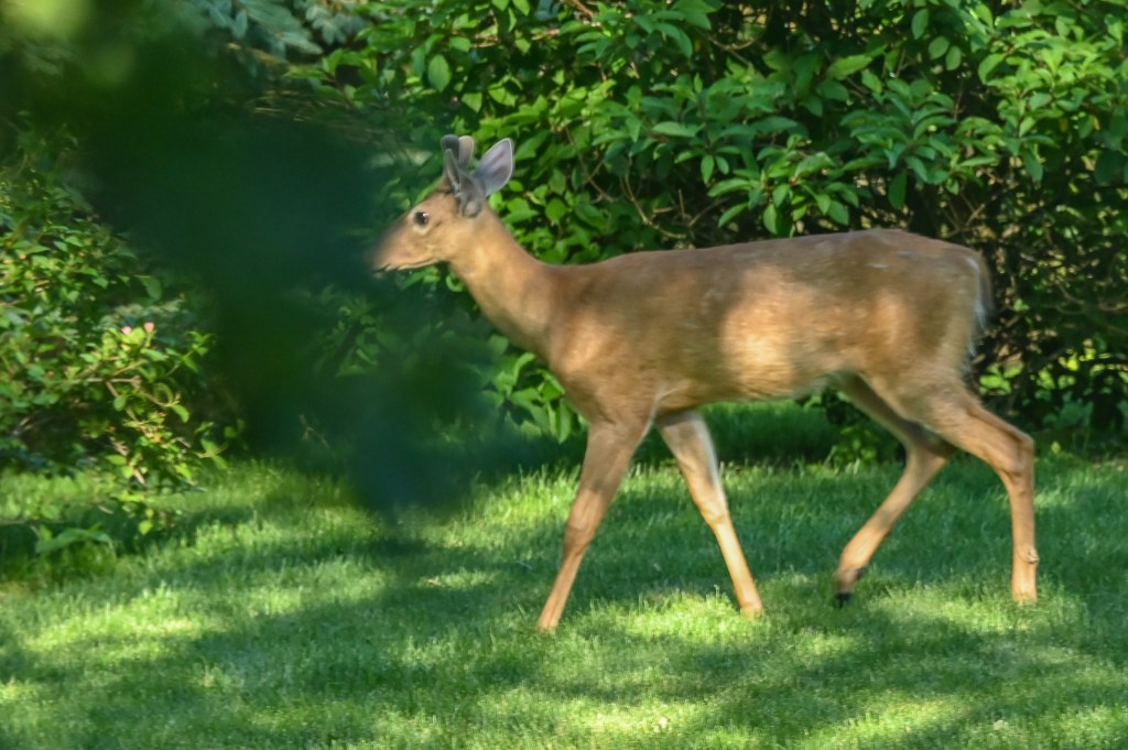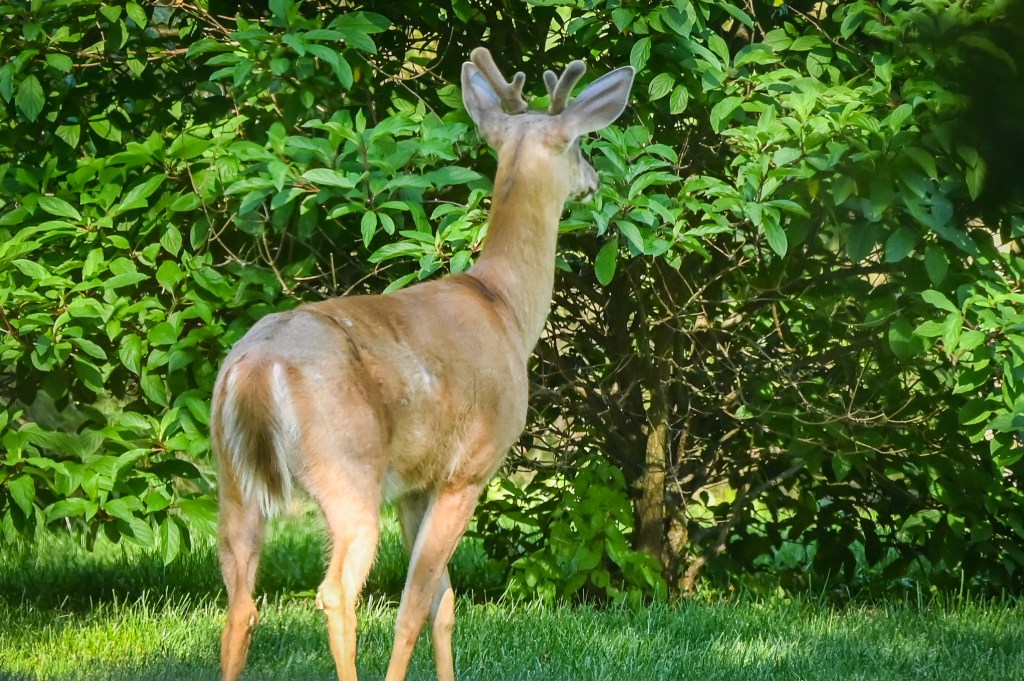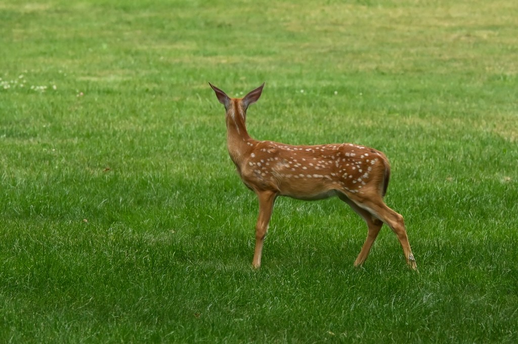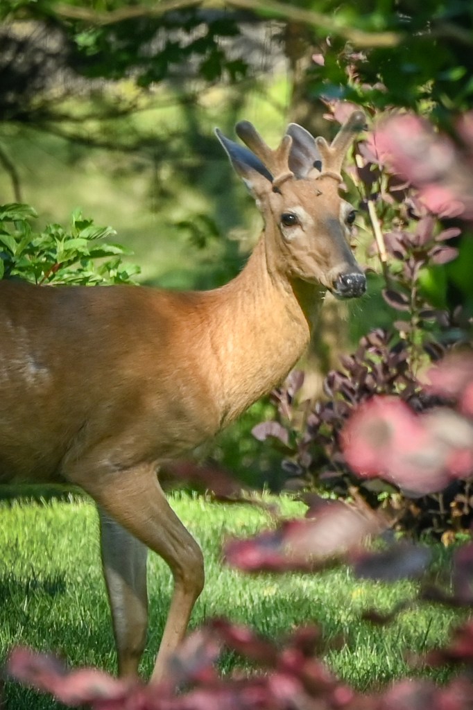 It all started early one morning when we noticed a visitor breakfasting in the back yard.But wait! Look who else has arrived!A young buck enjoys our house special, succulent turf du jour.Are you looking at me, lady?Just a moment…do I hear something over there?I guess it’s nothing. If that lady is going to be taking pictures I better spruce up a bit.Meanwhile, another visitor approaches the buffet.Just one moment! Who are YOU?Why, no one important, sir!OK then. Just so it’s clear who’s the big buck around here.Yes sir, of course sir!Shhhhh! Just a word of warning, watch out for the big guy over there.Thanks for the tip!And another thing, you two youngsters need to show more respect!I swear, this younger generation has no idea. The things I had to put up with when I was a kid. Why I walked to school in blizzards, uphill both ways!I’ll just grab a quick snack to go…Need to find me a quiet place for a nap.Kids today…gotta keep em in line. Yep, always something….