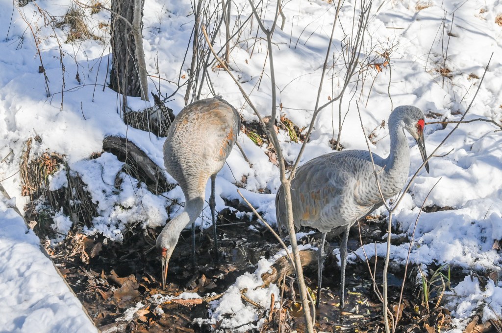 And beside her, on the other side of the bike rack, were the normal crane parking lot greeters, getting spruced up for their shift of collecting the lot fee from everyone arriving to enjoy the trails.