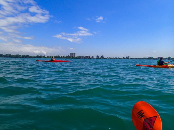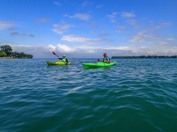 The river is a busy shipping channel, connecting the Great Lakes and lets ships get, eventually, to the Atlantic Ocean. We were told to stick together, not go too far out into the river, but stay away from the wall along the shore, where waves would be slapping and bouncing back at us.