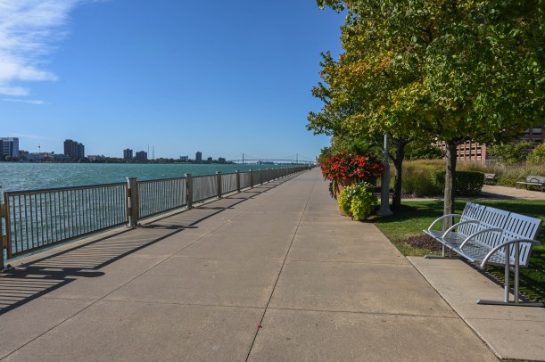 But the wind had picked up and the water was even more choppy than before. There was little time for taking pictures. I had to try, though, because the Detroit skyline was right there and just stunning with big puffy white clouds overhead.