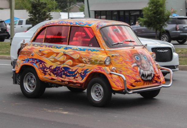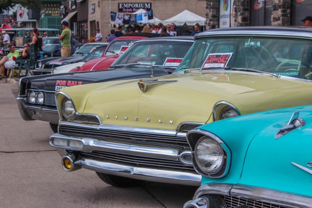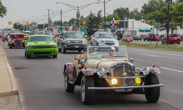 In the old days, on Friday and Saturday nights the locals would drive their muscle cars up and down Woodward Avenue, through and between several towns. These days, for one weekend every August, people come from all over the country, some bringing their antique muscle cars, to do the same.