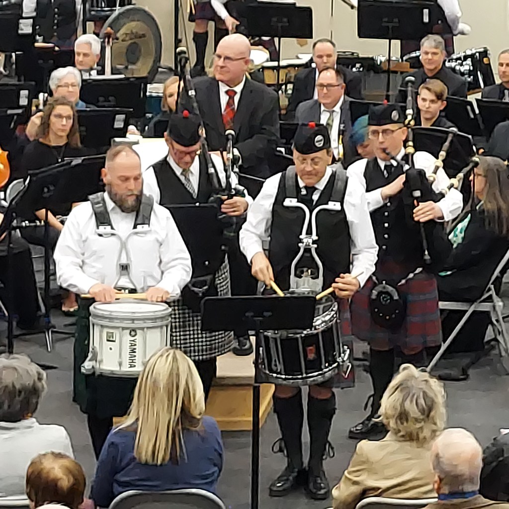 Then on Sunday afternoon she and I drove about 45 miles to Imlay City to listen to the Belle Valley Community Band play their spring concert, which was filled with Irish and Scottish music, and featured the Alma College Pipe Band.