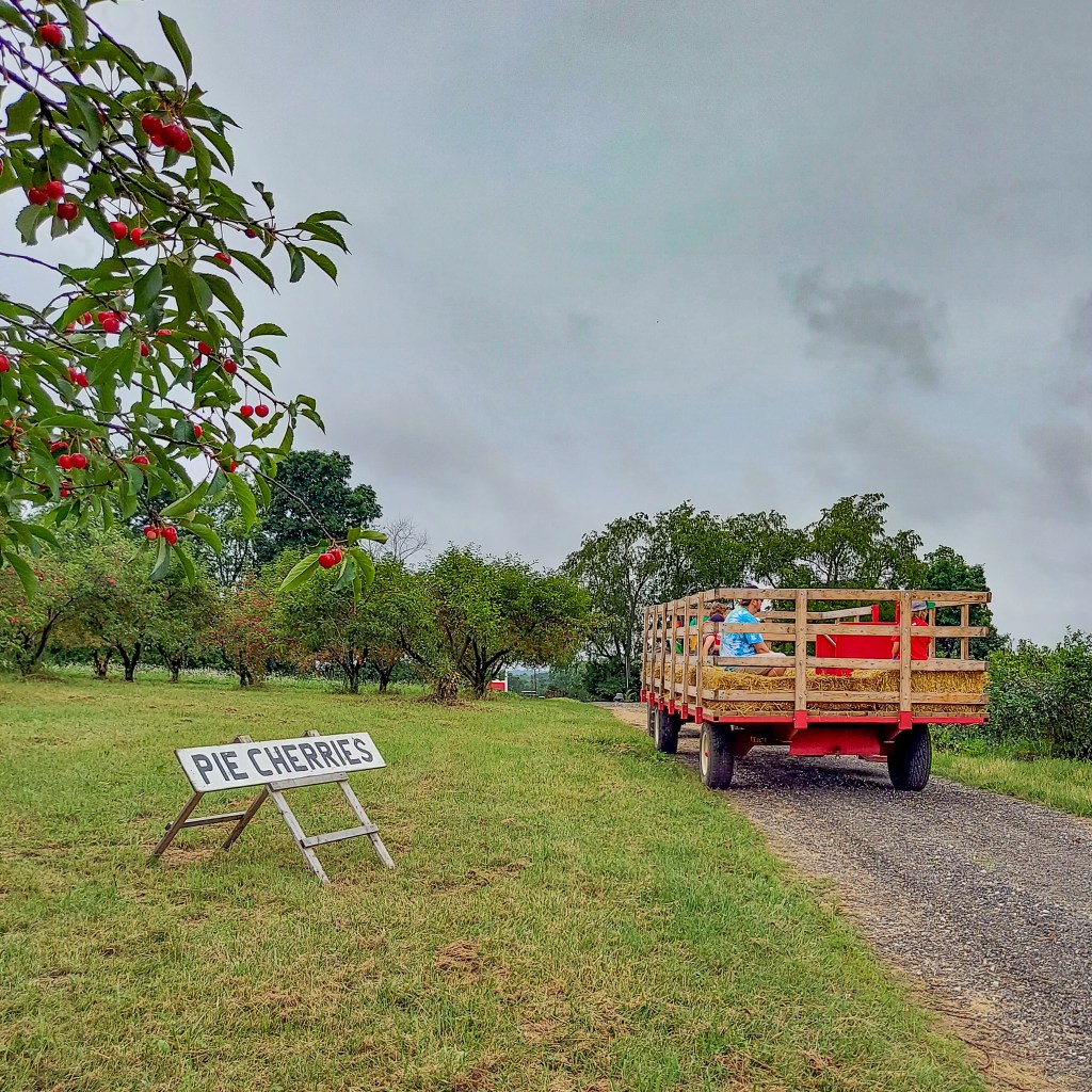 Lots has changed since then. What was once a simple fruit orchard now has a gift store and a winery and farm animals and a wagon ride out to the picking locations.