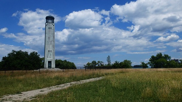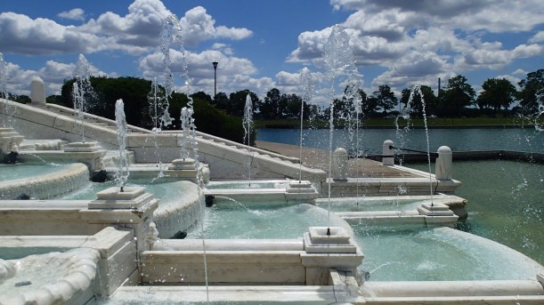 Our first stop was Belle Isle, a park on an island in the middle of the Detroit River. There’s a giant fountain on the eastern edge of the island and it’s very beautiful, but when I looked at my images once we were home I was fascinated by this shot – the spikes of water shooting up into the blue sky.