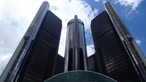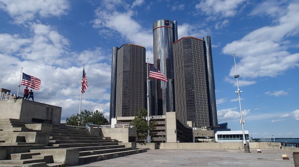 After spending several hours on the island we went back to the city and parked along the waterfront. It’s been developed into a beautiful walkway, part of which travels behind General Motors’ headquarters.