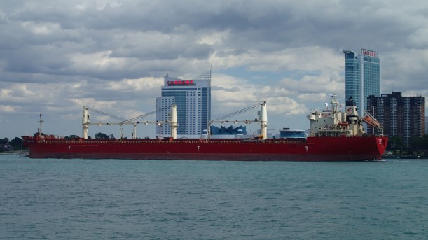 Across the river is Windsor, Canada. We waved, and her flag waved back.