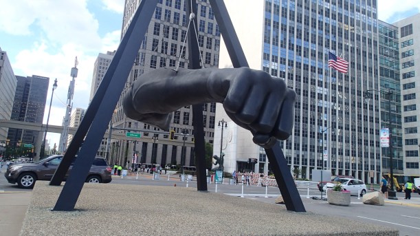 Up in town, Joe Lewis’ fist waited to great us.