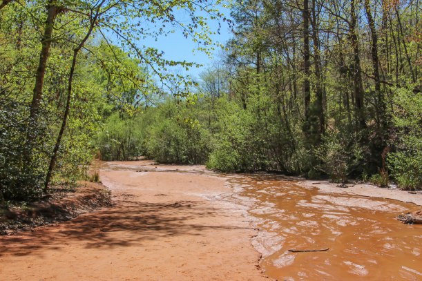 Eventually, when I had to, I just gave in and walked in the water. Don’t tell them, but it was pretty cool and my feet weren’t so warm when they were wet. But my beautiful white feet turned Georgia clay red!