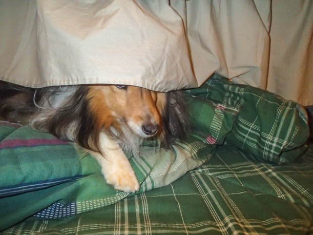 Once we got home and I got my supper I was all stretched out on my comforter when my Aunt decided she’d comb out all the seed pods and sticks caught in my muddy red fur. I opened one eye, didn’t tell her off or anything, just got up and crawled under the bed.