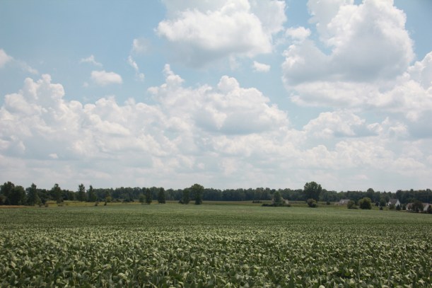 So I was grateful to get permission to camp Saturday and Sunday nights near the back of the farm, in what used to be the orchard. Today it’s a beautiful mowed area with a mulberry tree, beautiful oak trees and a couple of very old pear trees, heavy with fruit. The whole area is surrounded by soybean fields, giving me long vistas to watch the sky.