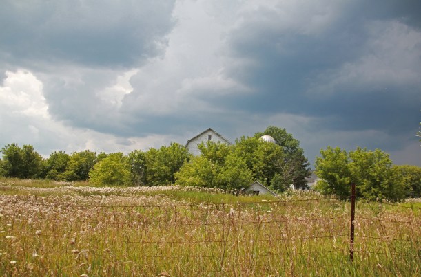 I quietly walked through the wet grass remembering playing in the corn crib, remembering the pigs streaming out of the barn doors, remembering where there once was a watering trough, a fence. A gate.