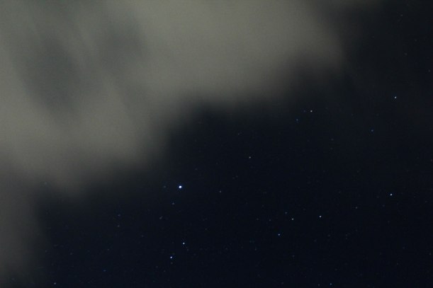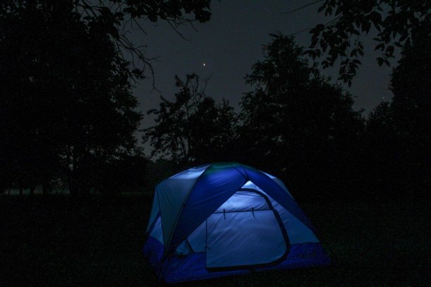 I tried again, but the fog and lights from the city made most of the stars disappear. Mostly what was visible was a planet to the south. So I worked with that for a little bit and then tucked myself into my tent and slept the rest of the night listening to the night noises.