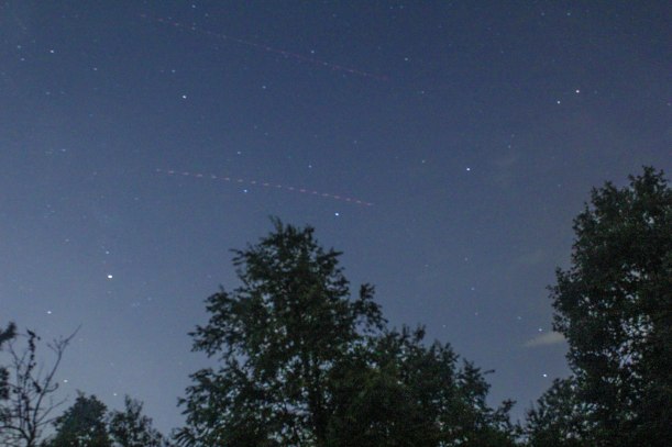 Saturday night I saw one meteor, just as I stuck my head out of the tent about 11:00 p.m. I set up the camera and messed with the settings for a bit.