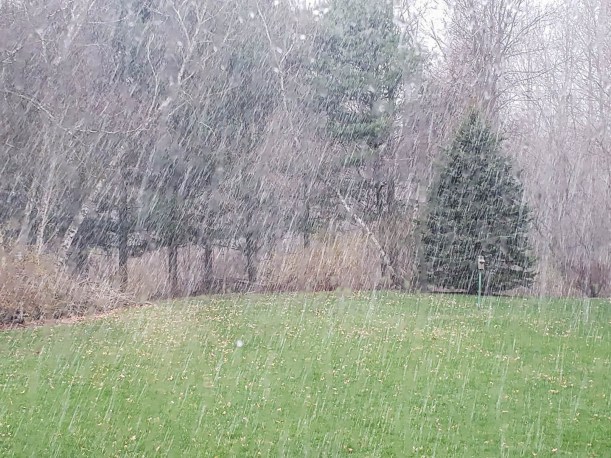 I left lower Michigan under blue skies and temperatures in the 80s. Five hours later I pulled into her driveway and it was 62 and raining. Suddenly the shorts and Tshirt I wore seemed pretty skimpy.
