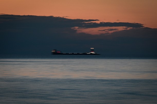 And we waited. The sun set. It was pretty. But the clouds obscured the comet, so we concentrated on watching a freighter go by.