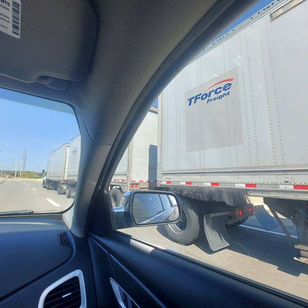 Passing a triple trailer truck on the Pennsylvania turnpike.