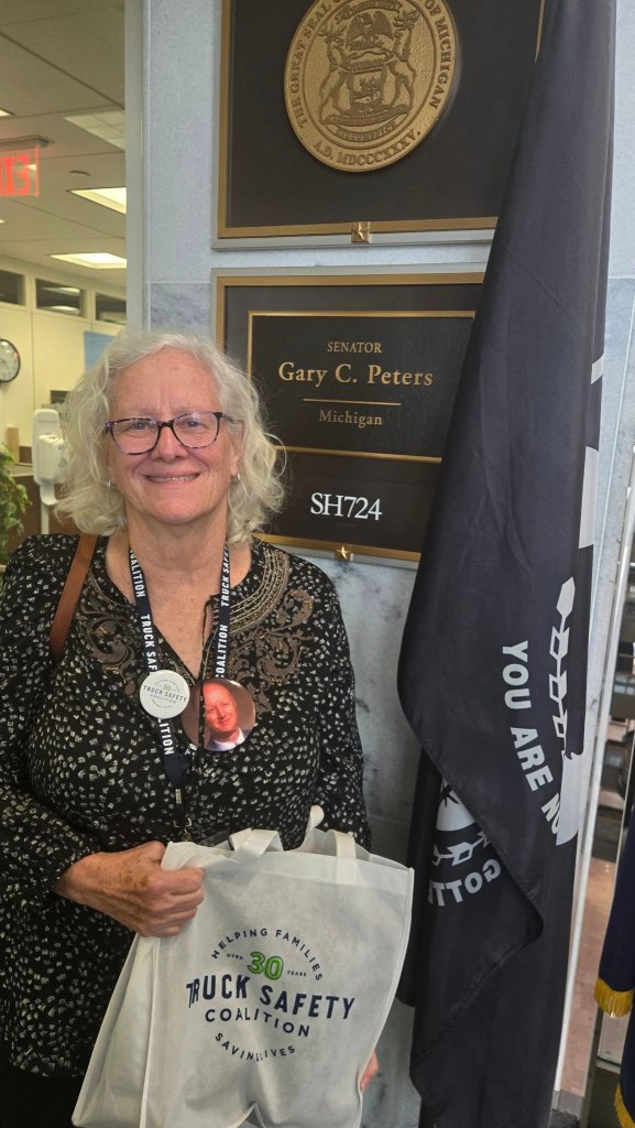 And in the following months we found the Truck Safety Coalition, made up of CRASH, (Citizens for Reliable and Safe Highways), and PATT (Parents Against Tired Truckers). It’s a group of people who have had similar experiences with large commercial trucks.