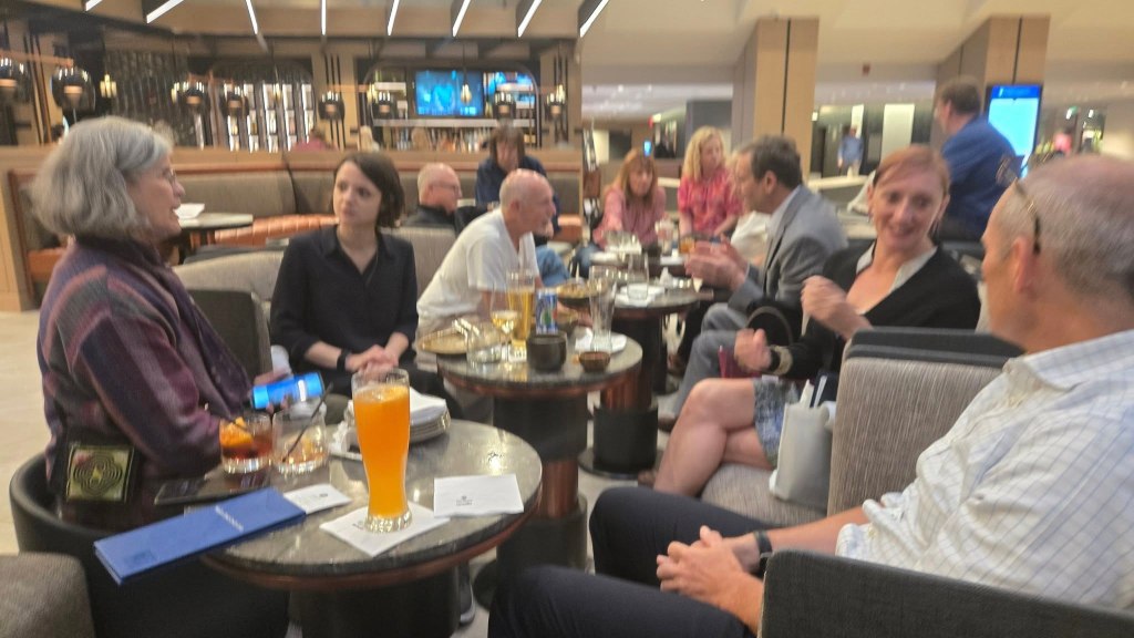 Part of our ‘debriefing’ after all our meetings were over. (No I hadn’t started drinking when I took this!)