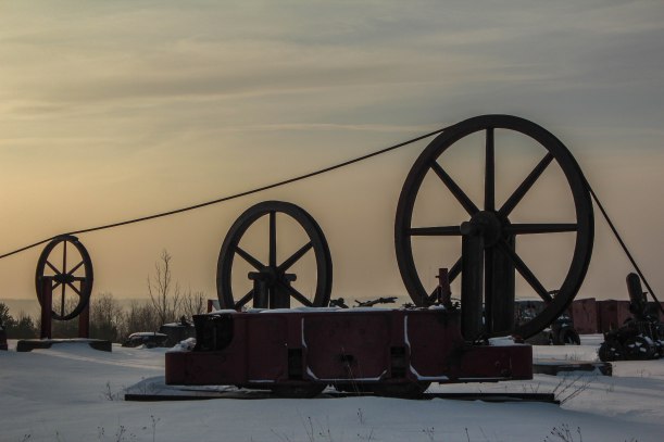 Though it was closed for the season, we were able to explore the grounds in safety this week on a pretty morning with the sun just coming up. There’s a beautiful building that housed the hoist that glowed in the morning light.