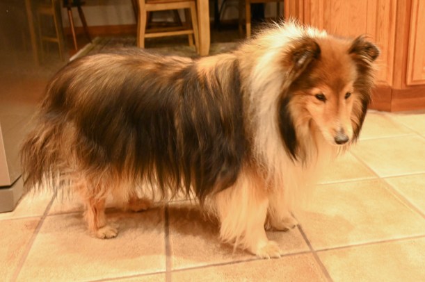 It might be a maurader! Someone to steal my supper! I ran up the driveway and saw somebody get out of the car! But the sun was in my eyes and I couldn’t be sure….so I kept running toward that person the better to tell them off about parking in my driveway without my special sheltie permit.
