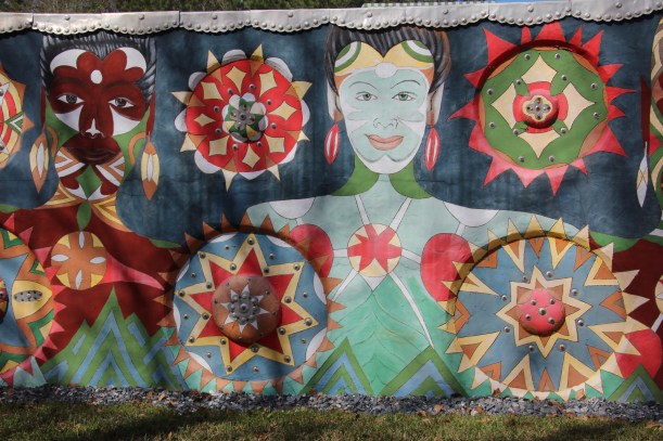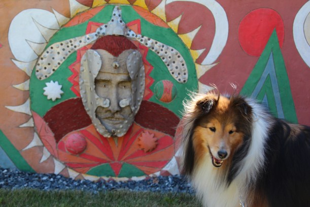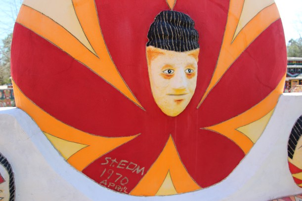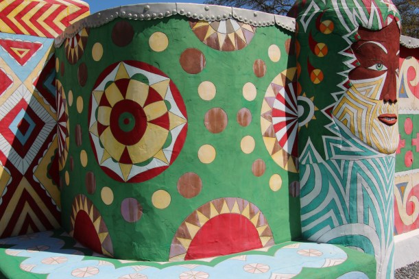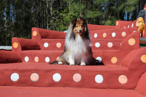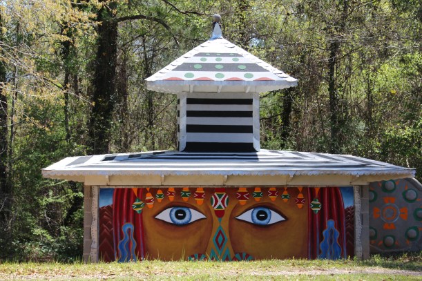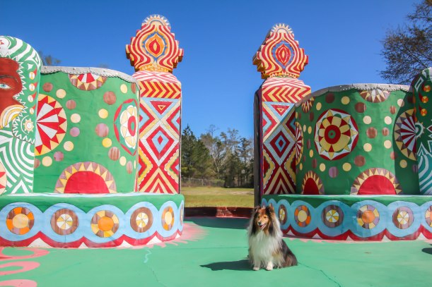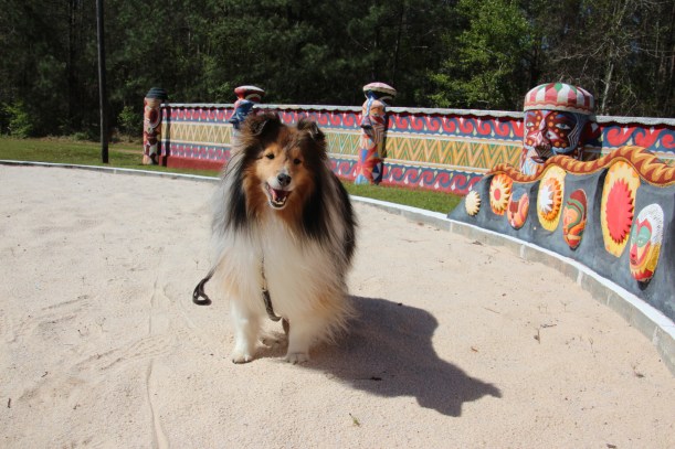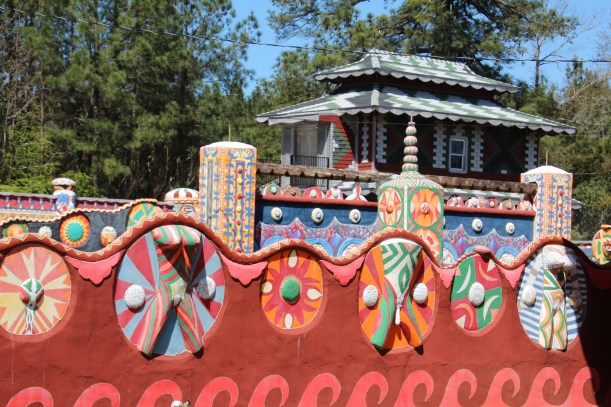 Saturday morning, my Gotcha Day, my Uncle and my Aunt and mama and I went to a very interesting art compound about an hour south of Columbus Georgia. It’s called Pasaquan, and it was built by a hippie kinda guy back in the 70s. (Mama says don’t say back in the 70s cause according to her that was just a couple years ago. Whatever mama.) You can hear him talk about it if you go to the link above. You can also google it and find out more. It’s been restored and is supported by Columbus State University and the Kohler Foundation.
