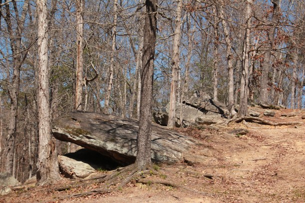 We went to Flat Rock Park in Columbus Georgia! It was a sunny day with blue skies but it was cold! Down in the 30s and low 40s! Mama was wearing her winter coat again and a hat and gloves and a scarf. And she was still cold. I told her to suck it up. I thought the temperature was just perfect for climbing up and down rocks.