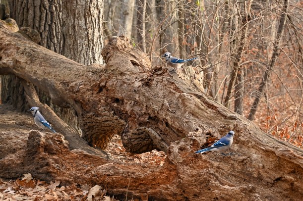 As I got closer I realize not all the sparkles were baubles. The trees were filled with bluebirds! And me with the short lens on the camera. I stopped right there on the side of the road and switched back to the long lens. Still, the birds were flitting back and forth, up and down from the tree to the ground. I’d catch a flash of brillant blue, but couldn’t get the bird in focus.