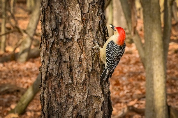 But lucky for them I happened to have quite a bit of seed left in my pocket, seed those pesky turkeys didn’t get. A few little birds came down for a treat. The woodpecker stayed around begging but waited till I left him something on the ground to grab lunch.
