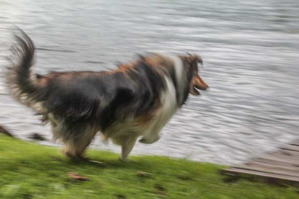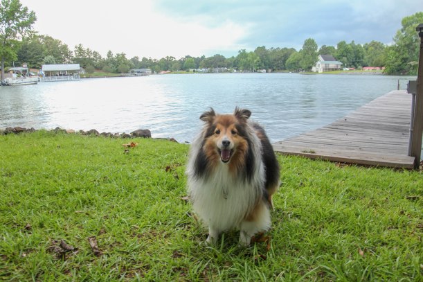 And while they were swimming I barked and chased the waves that dared to splash on my rocks, then I ran to the neighbor’s boat ramp and barked some more; I even got my feet wet there!! Accidentally of course…that one stupid wave was bigger than I thought.