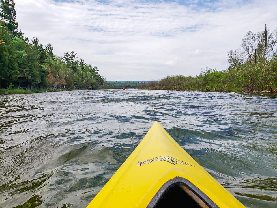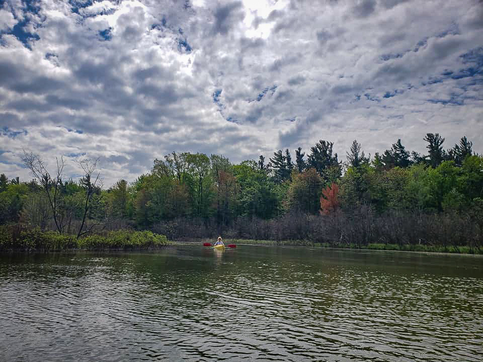 The next day we kayaked down the river again. We were looking forward to a nice easy paddle, but the wind picked up, and we had to work really hard across one long lake, and every time the river turned to the west into the wind.