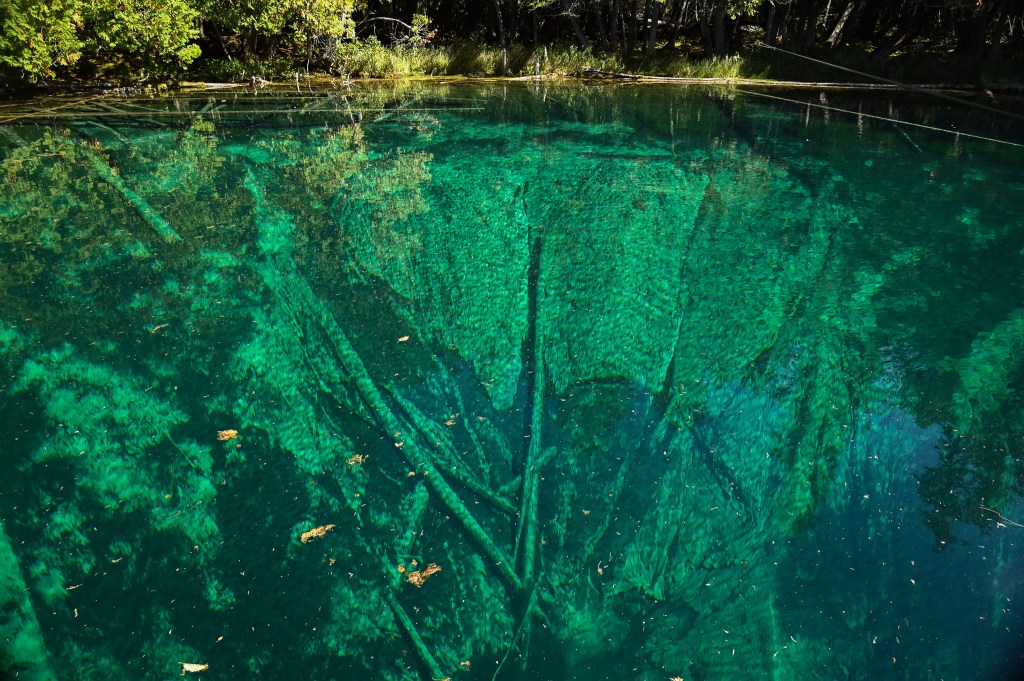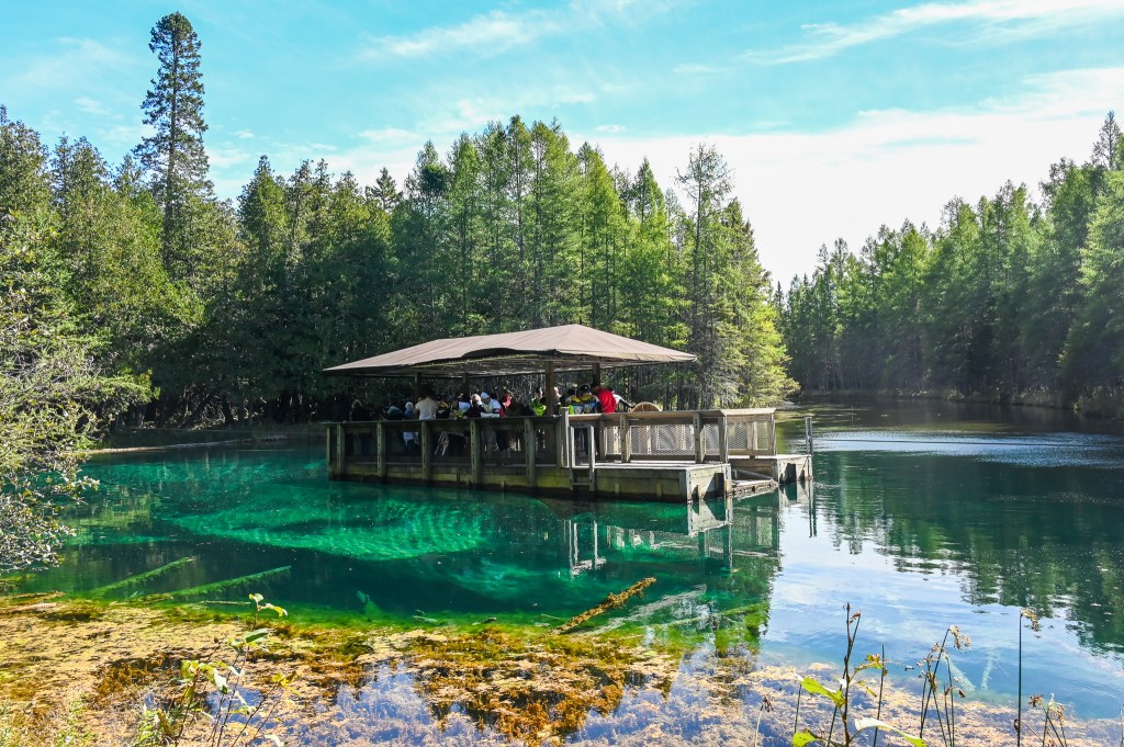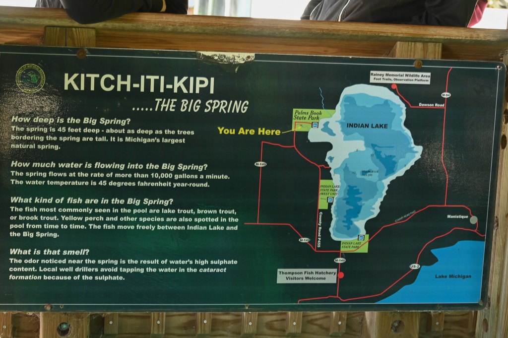 It’s a deep, beautiful spring that maintains a 45 F temperature all year around, even in the cold upper Michigan winters. There’s a barge like flotation that runs on a cable out over the top of the spring.