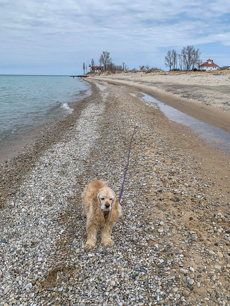 This week I had the opportunity to wander the beach at Point Betsie with a friend and her two cocker spaniels. We had a beautiful day, cool for the dogs but a bit of sun for us.