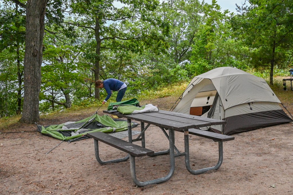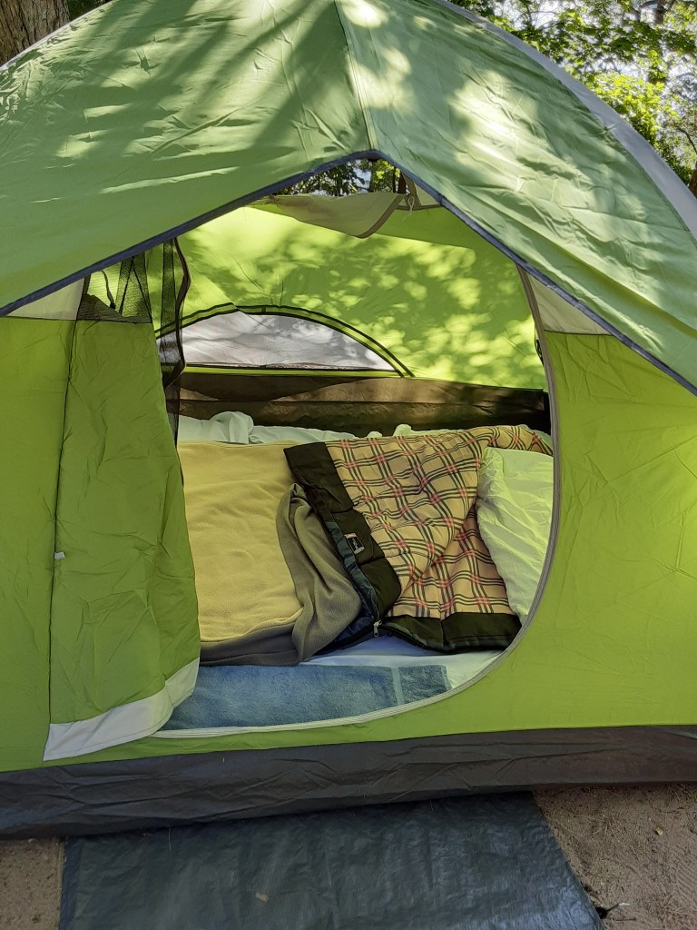 No, not me silly, you all know I’ve been camping enough to wear out a couple tents. But my sister was up from the South, visiting us here in Michigan, and one of the things she wanted to do was camp in her brand new tent.
