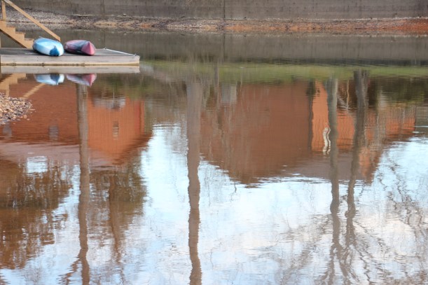 …and down on a little beach near the water, with the maple tree above me in full red blossom.