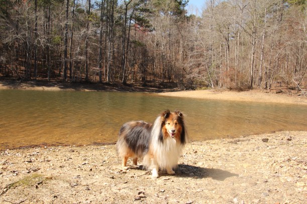 Once mama wanted to get down to the water to get a picture of some silly trees and I didn’t want to go, so she tied my leash to a branch and left me up there! Well! I told her she didn’t need to tie me up, I was perfectly capable of waiting for her on my own, but she didn’t believe me.