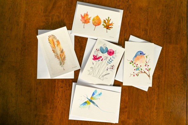 Since this pandemic became overwhelming, way back in March, I’ve been painting little cards and mailing them off to people.
