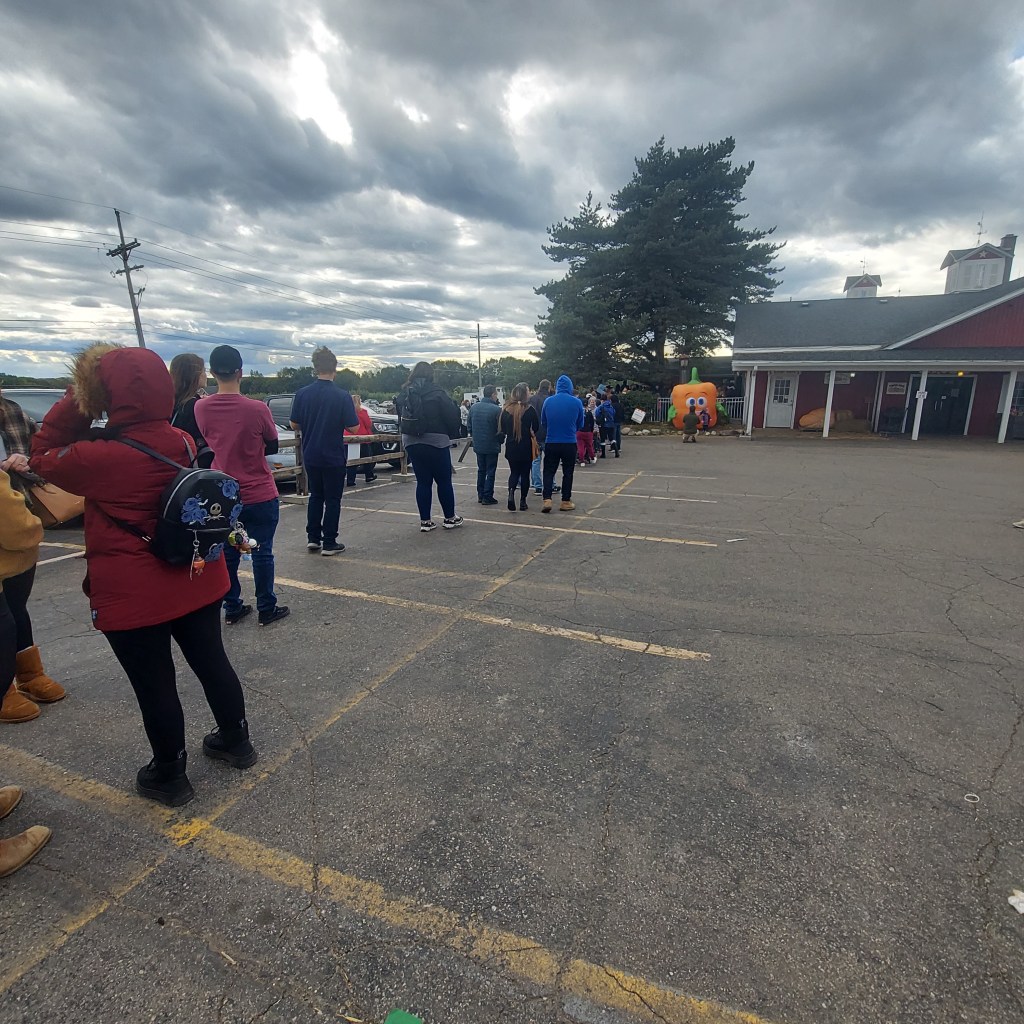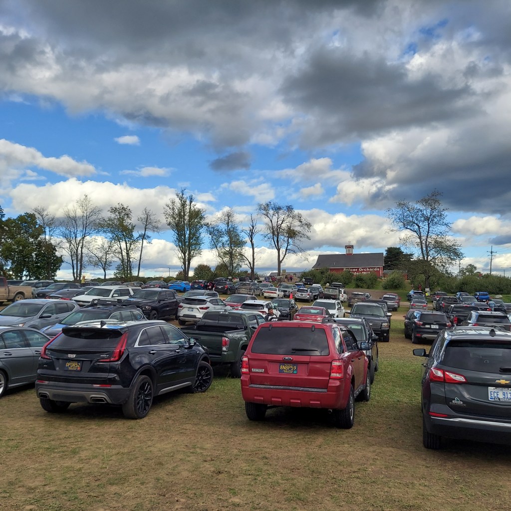 When I arrived, late in the day, I noticed right away all the additional parking. Most of which was filled with cars. An entire field that used to be, well, a field, was parked full of cars. Not to mention the regular lot next to the building that houses the bakery and picked fruit and jelly and stuff. And another full lot across the street.
