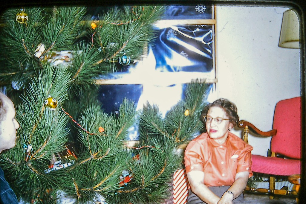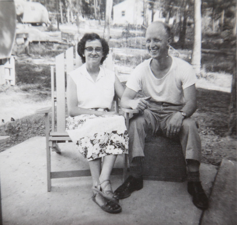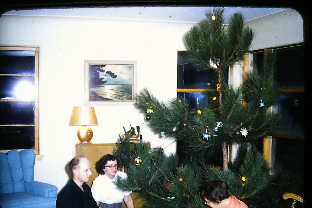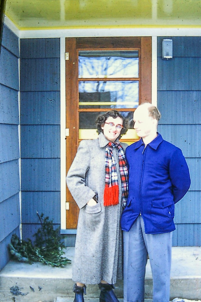 Mom and Dad visiting his mom up in Charlevoix MI at Christmas, probably 1952 or 53.