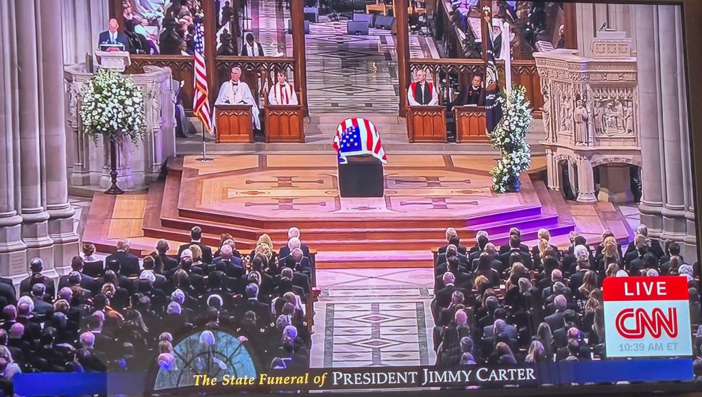 But this morning my husband and I watched the state funeral for our 39th President, and afterward I felt a little better. No, California isn’t better, the devastation there is beyond understanding, and my friends are still deep in grief, but watching the ceremony honoring President Carter took the edge off my sadness.