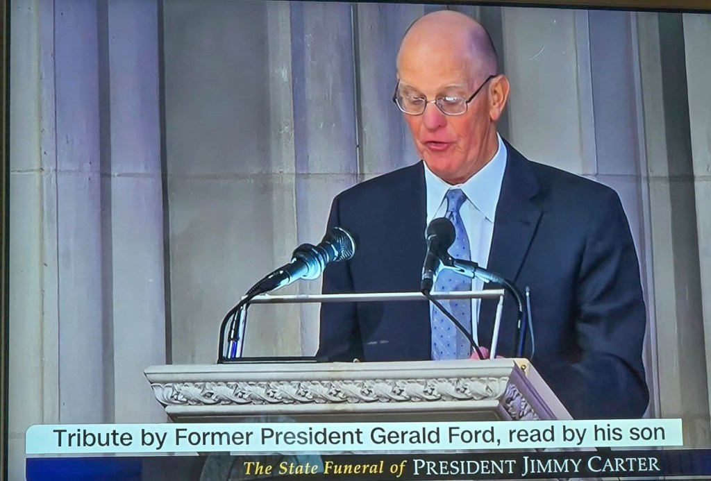 Not to say I didn’t cry a little bit during the service. The first tears fell when President Ford’s son, Steven, spoke. Before he began to read his dad’s eulogy for President Carter, he extended his heartfelt condolences to the “Carter children.” It seems back when his own dad died in 2006 the Carter kids offered his family support and comfort. Now he was returning the love.