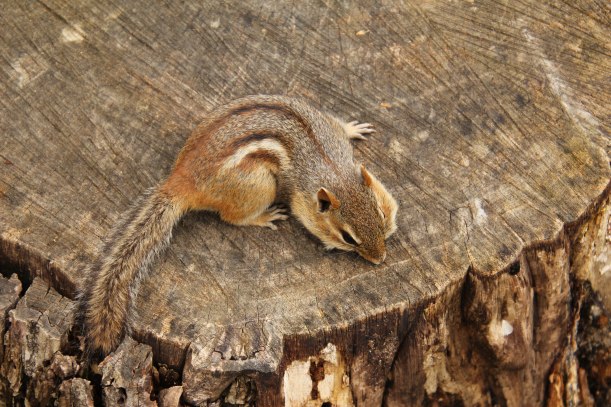 I sat there a long time, watching them and smiling. Eventually I realized a little friend had ventured up on the stump next to me. Begging for a bit of a treat.