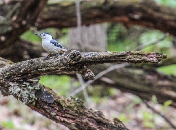 Time was passing and I felt like I needed to head back to the car. I was as far away as you could be and still be on the nature trails. I picked up my pace, intent on getting home to make dinner. Once again I heard fluttering near my head. This time it was a nuthatch wanting my attention. They’re usually a bit shy, though I’ve had them eat out of my hand before.