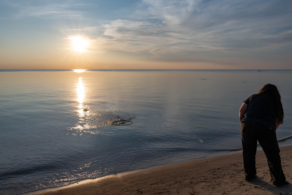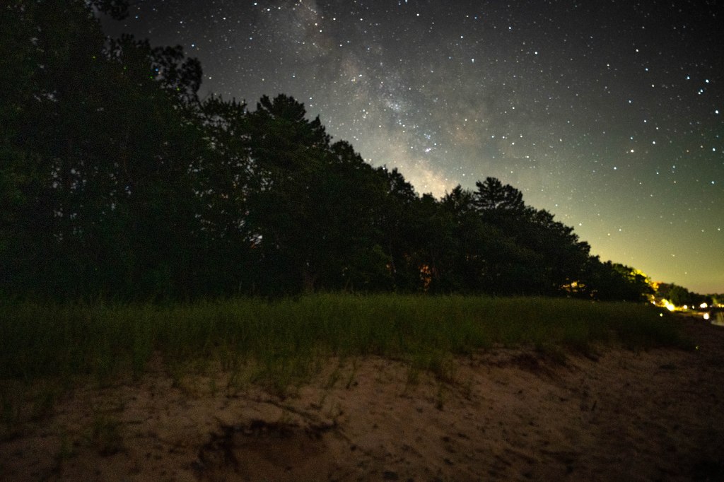 But physically it wasn’t really faced in the correct direction for a Milky Way shoot that night. Maybe earlier in the season when the Milky Way will be further to the east. I’m keeping it in mind So we headed up toward Port Austin, near the point of Michigan’s thumb. We found a little roadside park with a small sandy beach.