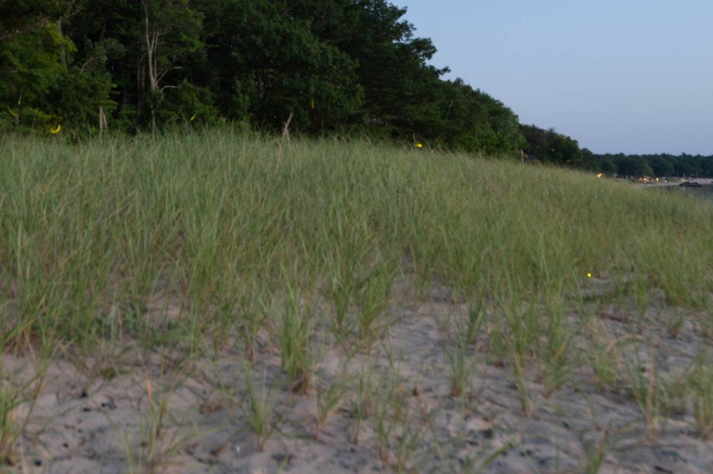 We went back to the car to get our real cameras and when we came out to the beach hundeds of lightening bugs rose from the beach grass. I tried so hard to get a picture of them, but it was hard.
