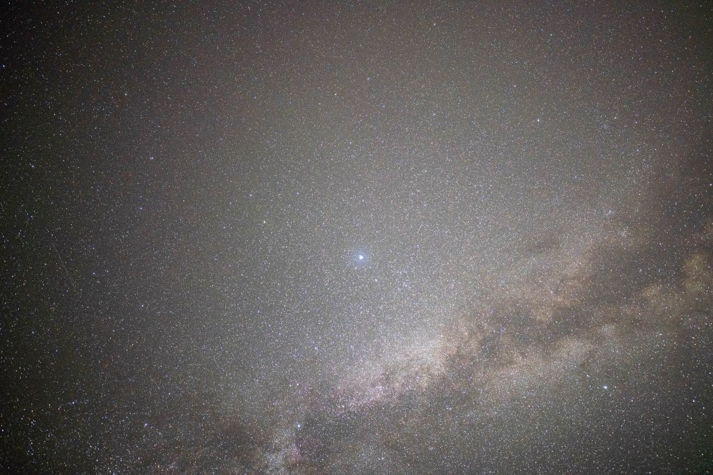 Nothing but stars and the tail end of the Milky Way overhead.