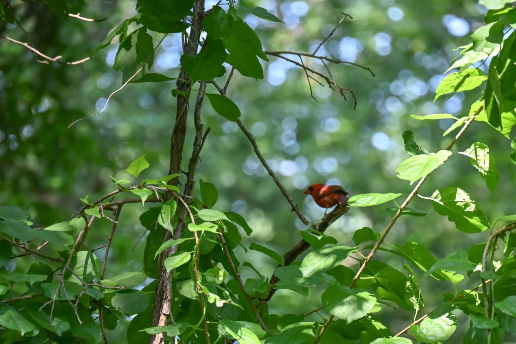 These birds are never happy when they stop by and you’re at their site. I sat for hours, still in my chair, camera ready, and didn’t catch a good look at one bird, though I heard redstarts and vireos and wrens all around me.