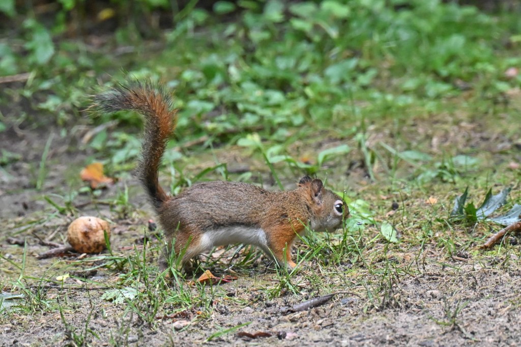 And then I noticed this little red squirrel looking a bit worse for wear. She skittered around the campsite and then disappeared.