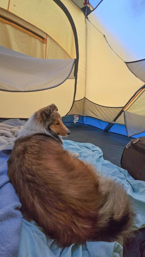 It takes me an hour to pack up without the distraction of a curious dog. But next time, if she’s willing I think we’ll spend the night in the tent. Maybe she’ll begin to understand it’s all an adventure and mom’s got her back.