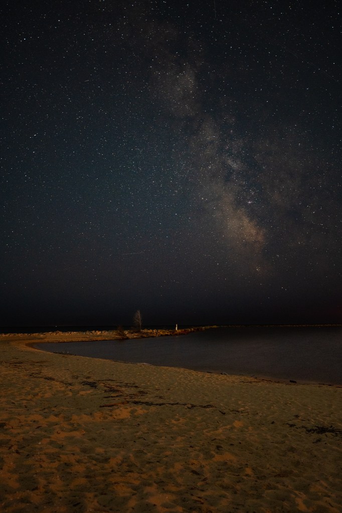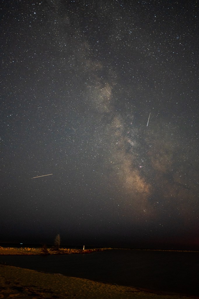 So, once again, I wasn’t thrilled with the Milky Way images, but shooting out over Saginaw Bay was fun. There was a tree on the top of the bluff, and the Big Dipper was just above it. Though it’s hard to see the Big Dipper because the camera sees so many more stars than our eyes do.